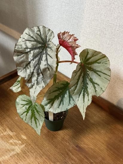 カーチュツ社のパトリック氏の交配。花は稀に咲きますがシルバーリーフを楽しむベゴニアです。姿良く茂ります。2.5号鉢