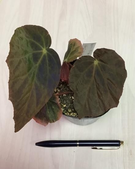 元祖、青く光るベゴニアです。光線の加減では青色色素が見える面白いベゴニア、産地はマレーシアはペニンシュラ。