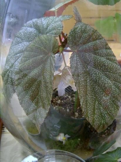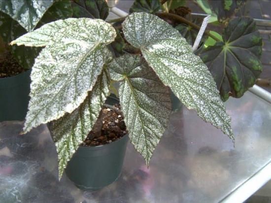 開業前の20年以上前にハワイに友人から入手した大変奇麗なやや多肉茎になるベゴニアです。入手当時はテラリウム栽培で管理していました。天の川の様な美しい銀星斑にルバーシーの様な大きな奇麗な花が咲きます。ある程度の湿度を保ては開放環境でも栽培可能。2号ポット。