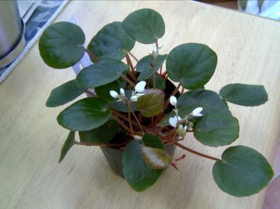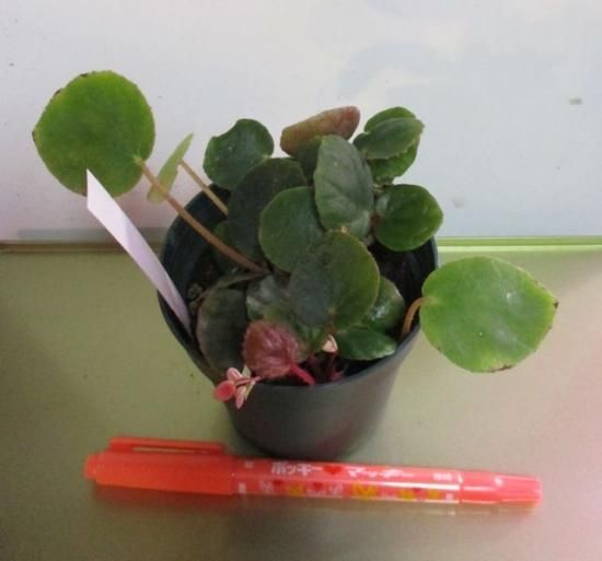ボルネオ原産の小型種 ベゴニア協会由来の古くから日本に有る品種で人気が有ります。それはプレーンな可愛い丸い葉と白い小花が咲くテラリウム栽培に向く品種由縁と。2号苗