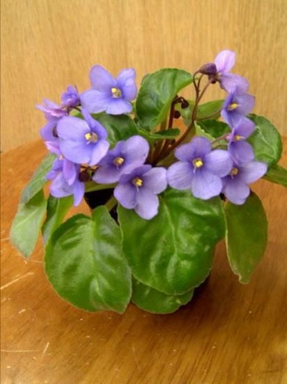 Single dark blue. Medium green, round, leaves with soft, velvety feel. Standard species.